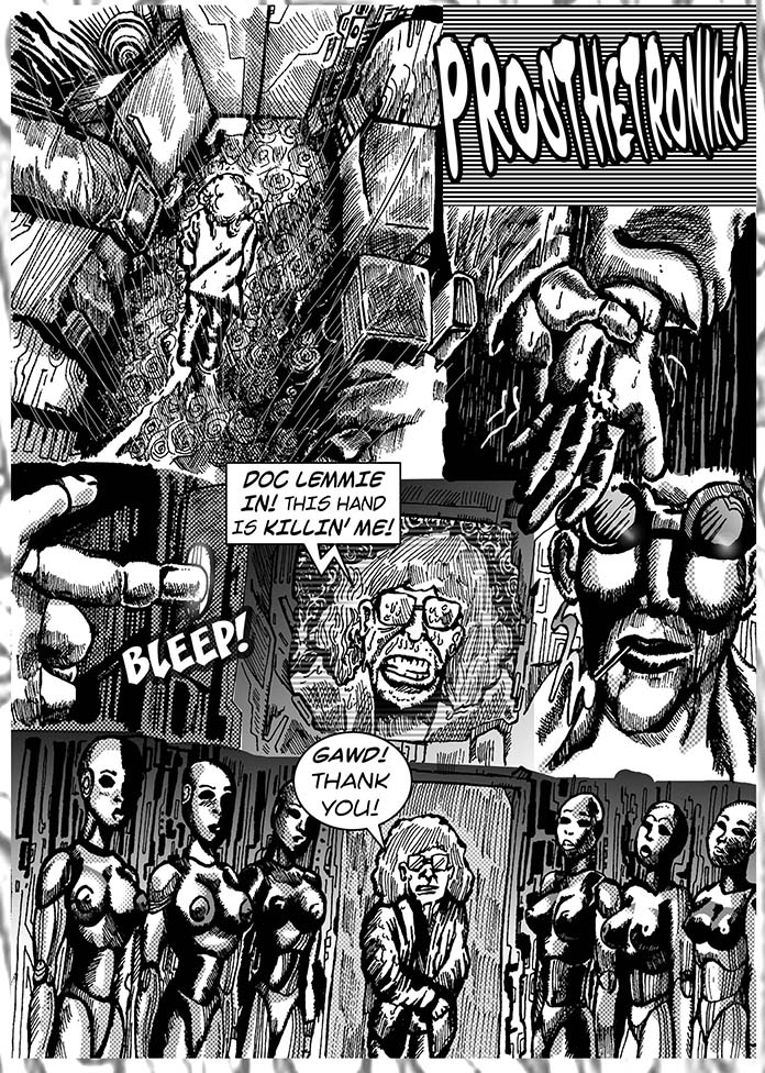 Art and Stories by JT Wilkins Single Issue 36 Pages B/W Tan Newsprint Sci Fi Robotic Stories! Contains 5 stories: Anything For You Bar Nun Prosthetroniks The Lesson Mr. Chi’s Bot Shop Limited Run