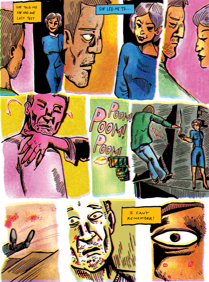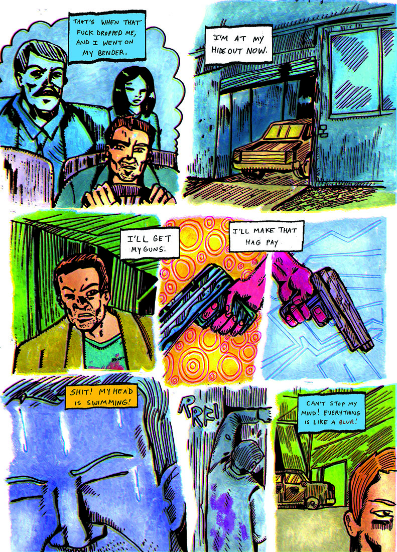 Hair Trigger Killer Conclusion- Meet Benjamin, and ex-syndicate soldier who spins a tale of how he found himself in the "employment" of the sinister Dame Melrose. He is given a serum that makes him the ultimate hitman. (1 page missing but included on poster)
